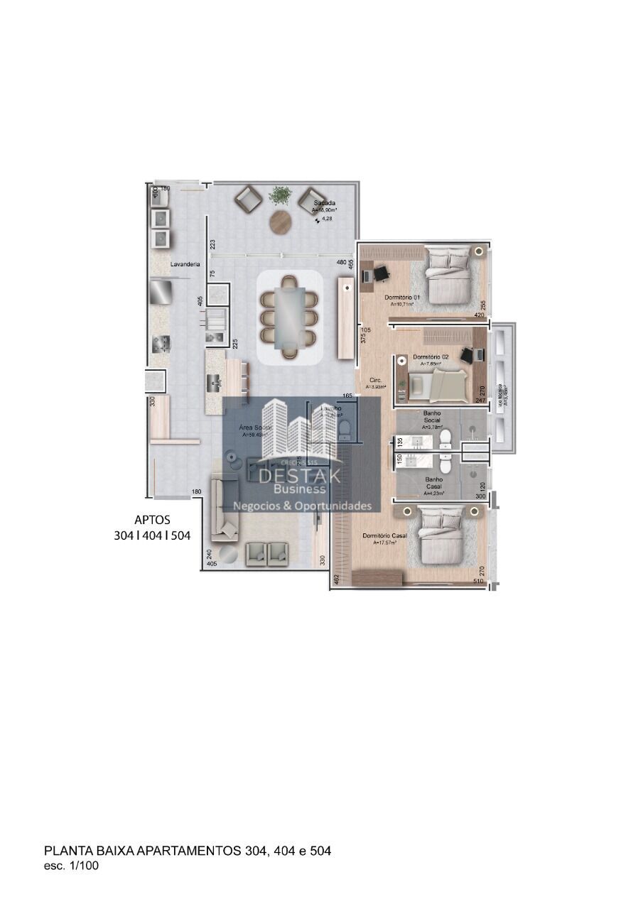 3 Dormitórios, sendo 1 suíteÁrea Privativa
